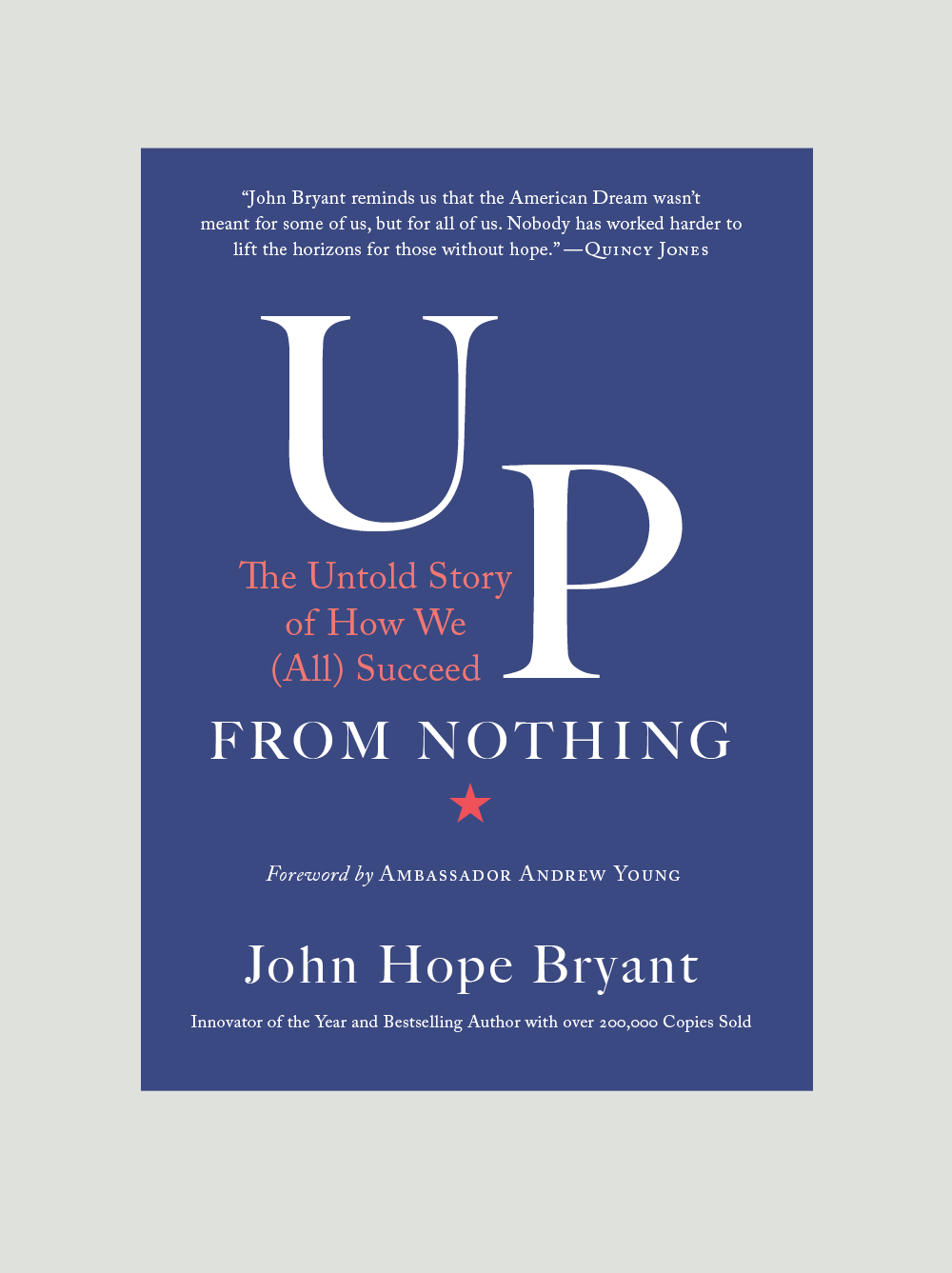 While considering how to describe my work on Up from Nothing, I came across this review: “It looks good on my bookcase wall.” So I guess I did my job well. I particularly enjoy working on type-driven covers—the challenges are a test of my typographic knowledge, skills and that type can evoke a story or a message. I especially like the fact that Quincy Jones’s endorsement is included.