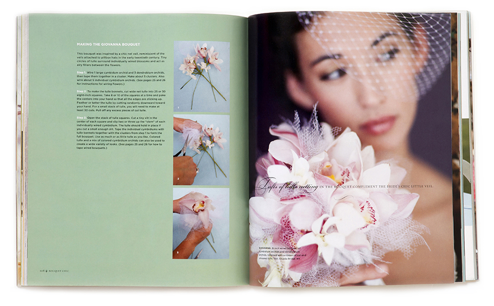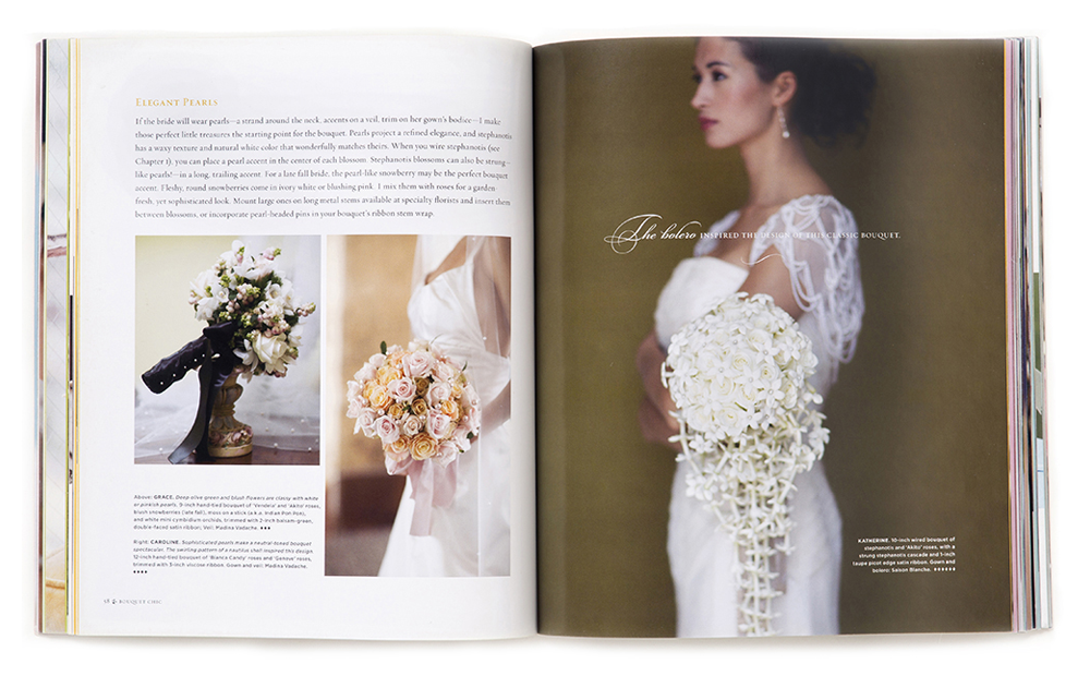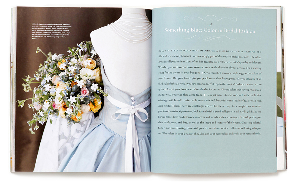 Cover-to-Cover book design for a how-to and inspirational guide to wedding floral bouquets, 160 pages with 200 images.
